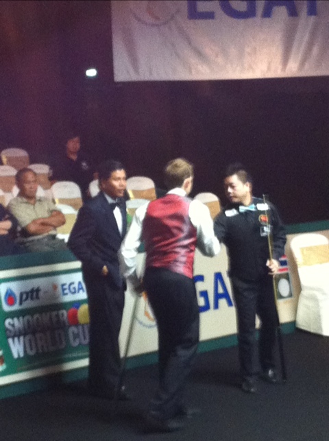 My first time watching snooker in live and I must say it was pretty sweet, despite the fact that every frame seemed to last an eternity. You might think I’m overreacting but seriously, two best of sevens lasted from 1pm to 10pm, _10_ hours! The second match was scheduled to 3:30pm but started at 5pm and it was incredibly slow. England and Hong Kong didn’t want to give the other team an easy chance so it was basically 7 defensive games, many lasting way above the 30 minute mark. The decider passed the hour mark… It will be interesting to see hong kong play northern ireland with the attacking style of Mark Allen, hopefully it will be more entertaining. That’s my main point, today I watched some quality snooker but not all that entertaining.