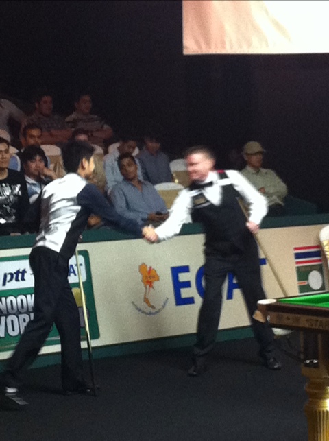 Also had some bad experiences at the event. Came to the wales-china game and some idiots were sitting in our seats. They didn’t even want to move when we approached them; of course not it was the best seats in the hall. Had to watch the series over a guys head. Great.. Also during Hong Kong – England some Pakistani guys were sitting behind us and talking/commenting something after every single shot being made. Jesus it’s worse than overhearing teenagers at the movies. Can’t enjoy the game when they grind your gears like that. Also had an incident during one or two frames of China – Wales where two people behind us was commenting every damn shot by either a noise like “ouff” and “woooaw” and other annoying reactions or sentences like “he can see this” or “too hard” or other obvious things. One of those people also clap way too strong, felt like bombs were going off behind me everytime somebody made a decent pot. Jeez some people..