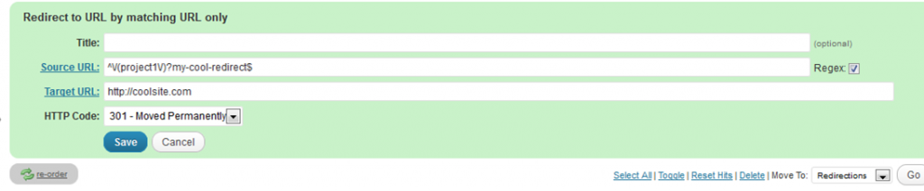 All right I figured, but can we at least insert a token ala shortcodes which would be replaced with the site url so we can achieve the result above? Nope. I also checked the source code and noticed how the plugin really lacked filters and actions so custom plugins can’t really customize the Redirection plugin in a good way (you can hack it in but then you could never update the plugin).